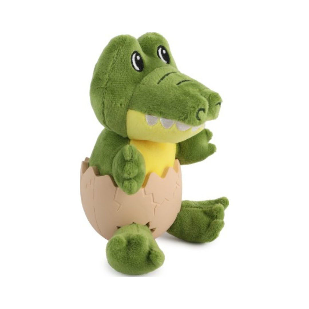 Peluche con forma de cocodrilo con huevo diseñado para el entretenimiento y la comodidad de tu mascota. Fabricado con materiales suaves pero resistentes, es ideal tanto para juegos de morder como para abrazar y descansar.