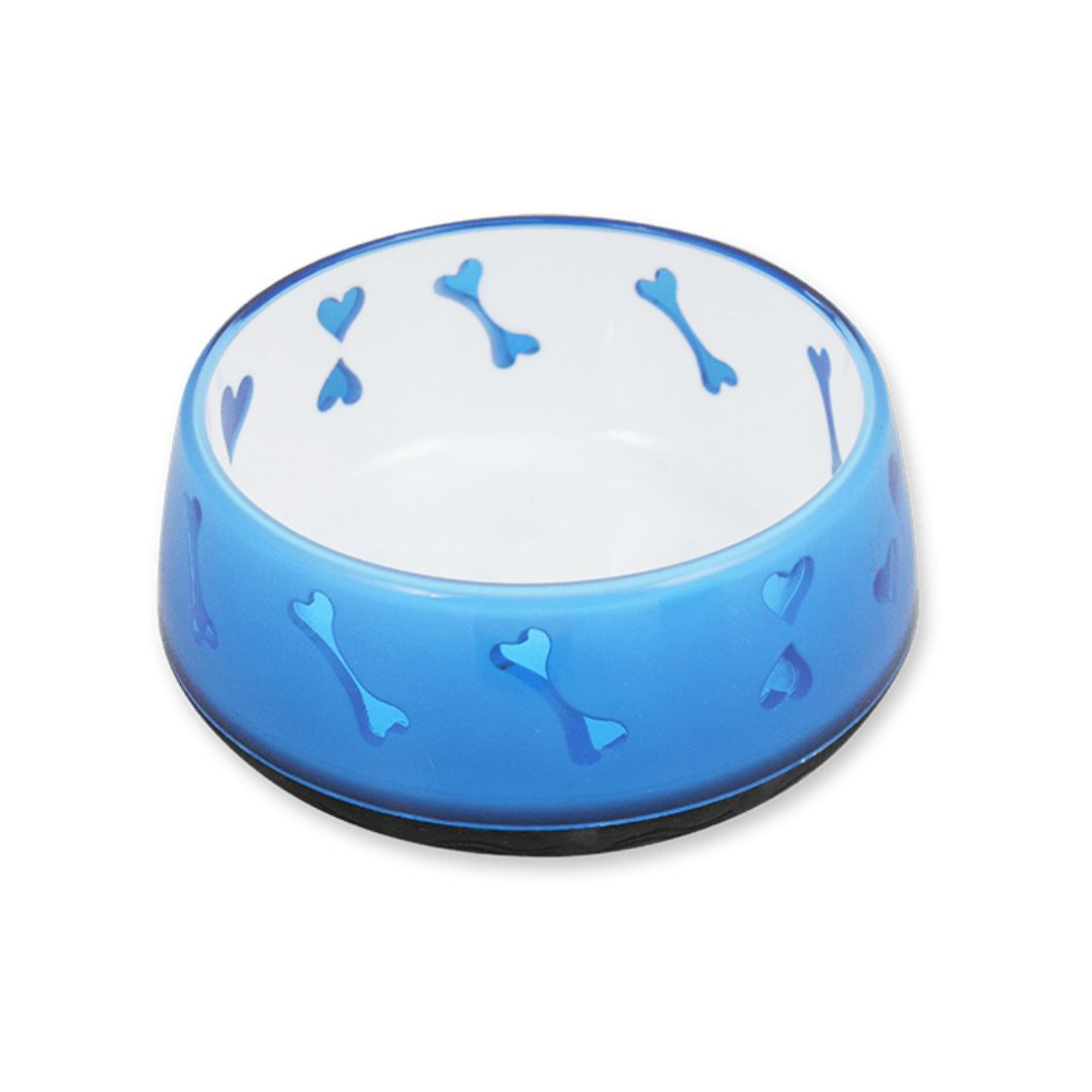 Plato Para Perro AFP Hueso y Corazones Chico Azul